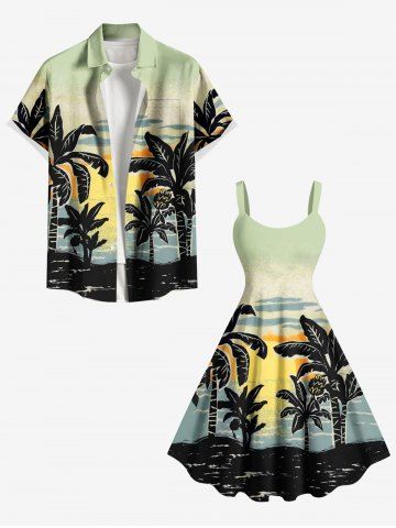 Plus Size Coconut Tree Sun Sky Ombre Print Hawaii Tank Dress - Light Green - S