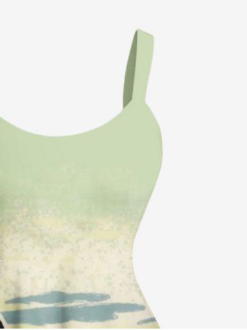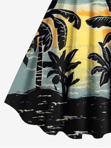 Plus Size Coconut Tree Sun Sky Ombre Print Hawaii Tank Dress - Light Green - M