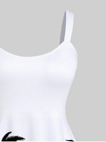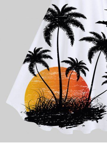 Plus Size Coconut Tree Sunset Bird Print Hawaii Tank Dress - White - M