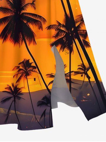 Plus Size Coconut Tree Sunset Galaxy Print Hawaii Split Pocket A Line Midi Dress - Orange - 4x