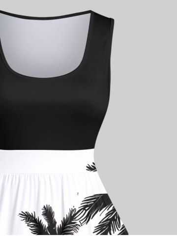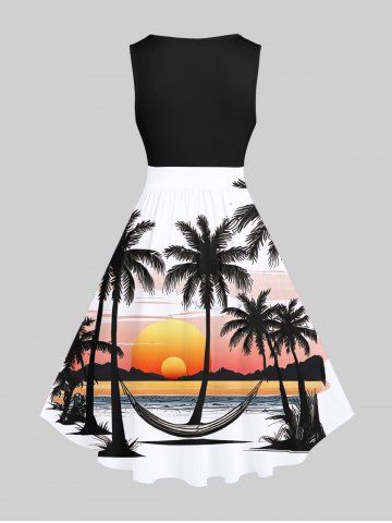 Plus Size Coconut Tree Sunset Hammock Sea Mountain Print Hawaii 1950s Vintage Dress - White - 6x