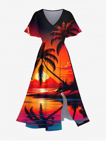 o*****05Plus Size Coconut Tree Sunset Mountain Sea Cloud Print Split Hawaii Midi DressColor: RED Size: LGorgeous it is so bright just stunning I get so many compliments these are worth every penny