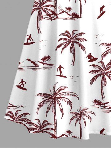Plus Size Coconut Tree Surfer Print Hawaii Cold Shoulder Crisscross Strappy A Line Maxi Dress - Red - S