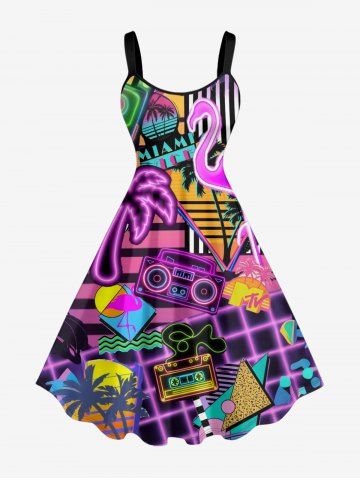 Graphic Dresses > Plus Size Coconut Tree Tape Flamingo Print Hawaii A Line Dress