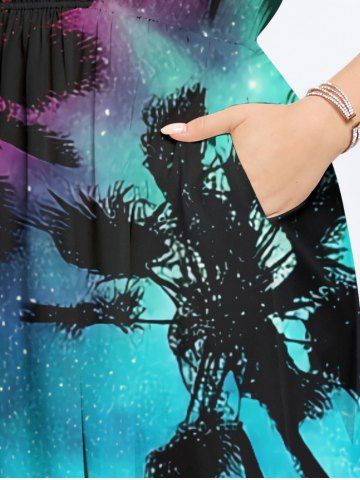 Plus Size Coconut Tree Tie Dye Ombre Galaxy Print Hawaii Split Pocket A Line Midi Dress - Multi-a - 4x