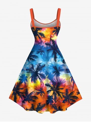 Plus Size Coconut Tree Tie Dye Ombre Print Hawaii A Line Tank Dress - Orange - 5x