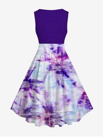 Plus Size Coconut Tree Tie Dye Print Hawaii 1950s Vintage Dress - Purple - 2x