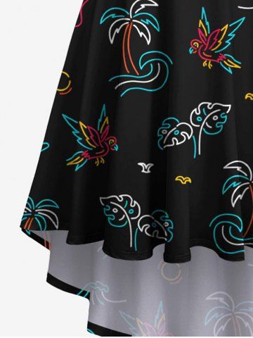 Plus Size Coconut Tree Tropical Leaf Bird Print High Low Hawaii Cami Dress - Black - 4x