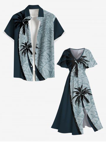Graphic Dresses > Plus Size Coconut Tree Tropical Leaf Colorblock Print Split Hawaii Midi Dress