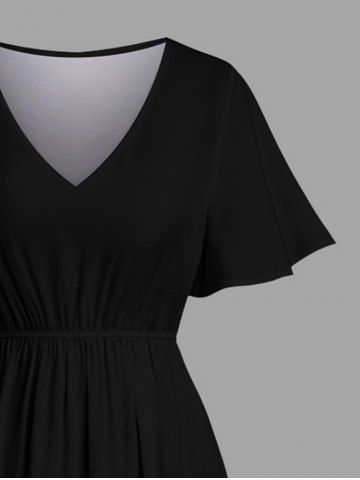 Plus Size Coconut Tree Tropical Leaf Flamingo Butterfly Print Hawaii Split Pocket A Line Midi Dress - Black - M