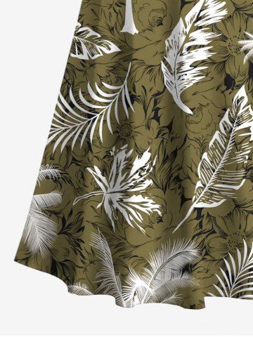 Plus Size Coconut Tree Tropical Leaf Flower Print Hawaii Cold Shoulder Crisscross A Line Maxi Dress - Deep Green - S