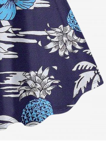 Plus Size Coconut Tree Tropical Leaf Hibiscus Flower Print Hawaii A Line Dress - Deep Blue - 2x