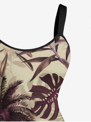 Plus Size Coconut Tree Tropical Leaf Hibiscus Flower Print Hawaii A Line Tank Dress - Light Coffee - 1x