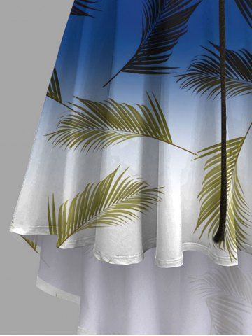 Plus Size Coconut Tree Tropical Leaf Ombre Colorblock Print High Low Hawaii Cami Dress - Blue - Xxs