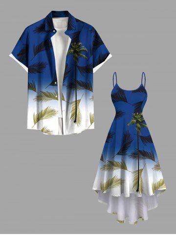 Plus Size Coconut Tree Tropical Leaf Ombre Colorblock Print High Low Hawaii Cami Dress - Blue - 1x