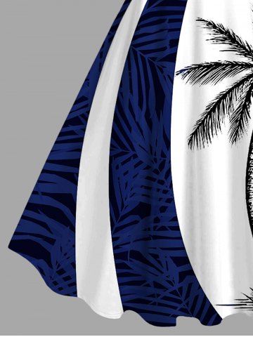 Plus Size Coconut Tree Tropical Leaf Print Hawaii Tank Dress - Deep Blue - M
