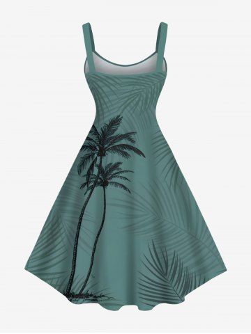 Plus Size Coconut Tree Tropical Leaf Print Hawaii Tank Dress - Green - 6x