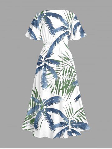 Graphic Dresses > Plus Size Coconut Tree Tropical Leaf Print Split Hawaii Midi Dress