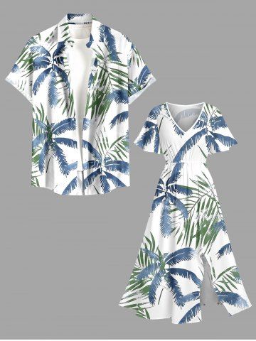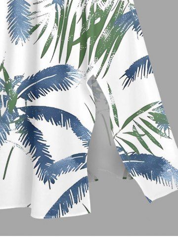 Plus Size Coconut Tree Tropical Leaf Print Split Hawaii Midi Dress - Blue - L