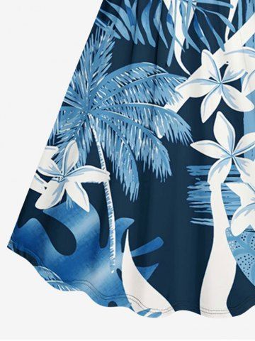 Plus Size Coconut Tree Tropical Leaf Sea Flower Print Hawaii Cinched A Line Dress - Cadetblue - 3x