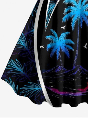 Plus Size Coconut Tree Tropical Leaf Sun Sea Waves Print Hawaii Tank Dress - Black - Xs
