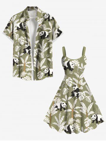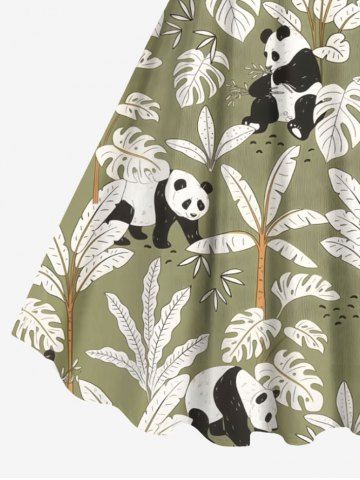 Graphic Dresses > Plus Size Coconut Tree Tropical Leaves Panda Print Hawaii A Line Tank Dress