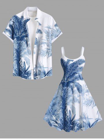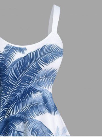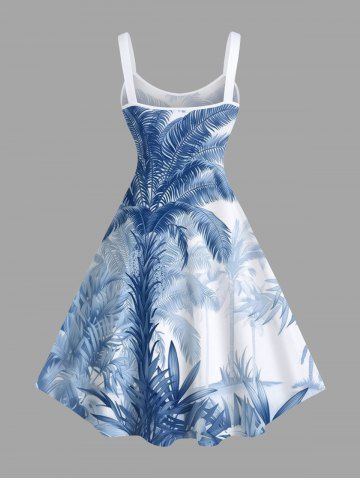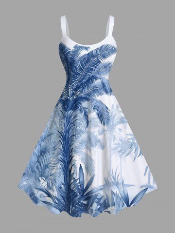 Plus Size Coconut Tree Tropical Plant Print Hawaii A Line Tank Dress - Blue - 2x