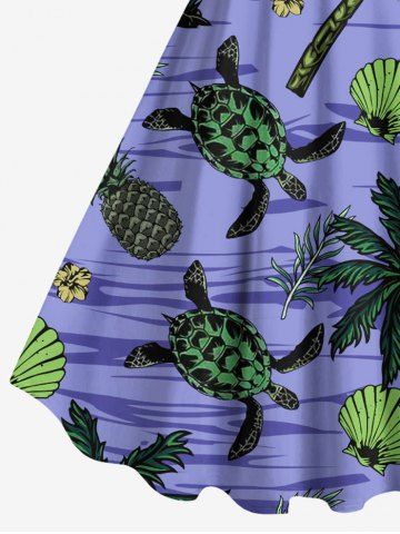 Plus Size Coconut Tree Turtle Shell Flowers Pineapple Print Hawaii Tank Dress - Purple - 1x
