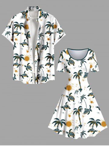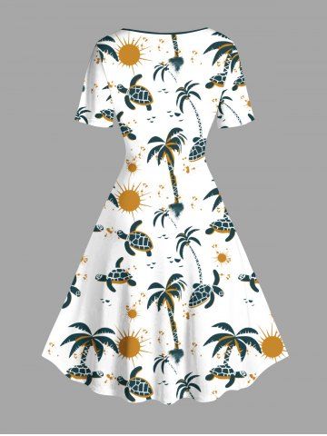 Plus Size Coconut Tree Turtle Sun Print Hawaii Vintage Dress - White - 1x