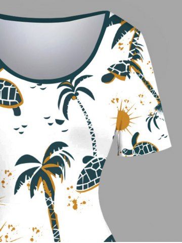 Plus Size Coconut Tree Turtle Sun Print Hawaii Vintage Dress - White - 3x