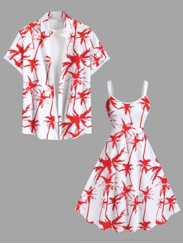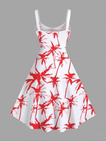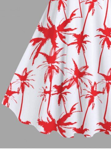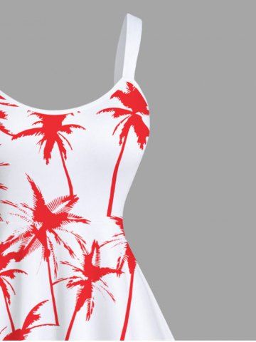 Plus Size Coconut Tree Two Tone Print Hawaii A Line Tank Dress - White - 2x