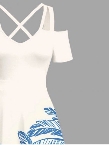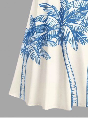 Plus Size Coconut Tree Two Tone Print Hawaii Crisscross A Line Maxi Dress - White - 3x