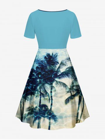 Graphic Dresses > Plus Size Coconut Tree Water Ripples Print Cinched Hawaii Dress