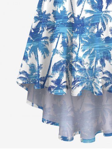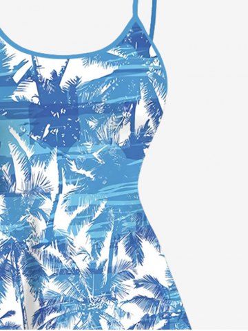 Plus Size Coconut Tree Water Ripples Print Hawaii High Low Cami Dress - Blue - Xs