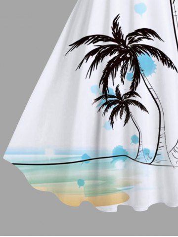 Plus Size Coconut Tree Watercolor Beach Print Hawaii A Line Tank Dress - White - L