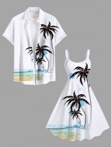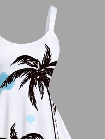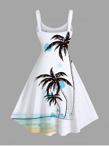 Plus Size Coconut Tree Watercolor Beach Print Hawaii A Line Tank Dress - White - 1x