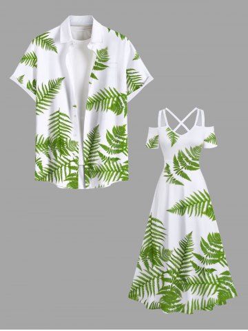 Graphic Dresses > Plus Size Coconut Tropical Leaves Two Tone Print Hawaii Cold Shoulder Crisscross A Line Maxi Dress