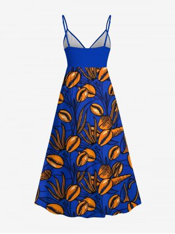Plus Size Coffee Beans Branch Print Hawaii Surplice A Line Cami Dress - Navy Blue - L