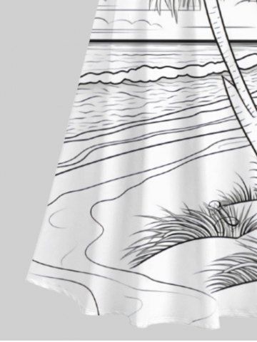 Graphic Dresses > Plus Size Cold Shoulder Coconut Tree Sea Print Hawaii Crisscross A Line Maxi Dress