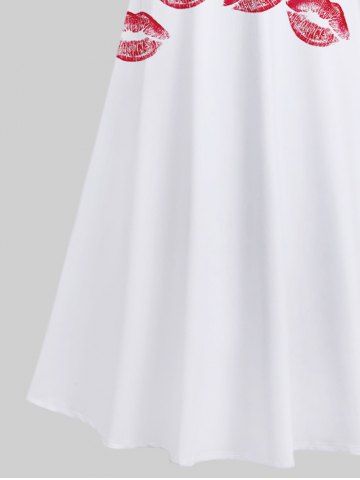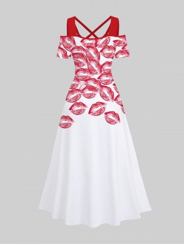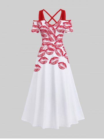 Plus Size Cold Shoulder Lip Print Crisscross A Line Maxi Dress - White - Xs