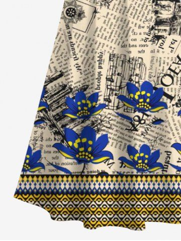 Plus Size Cold Shoulder Newspaper Floral Striped Eiffel Tower Print Crisscross A Line Maxi Dress - Multi-a - L