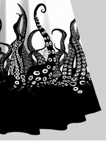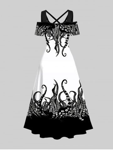 Graphic Dresses > Plus Size Cold Shoulder Octopus Two Tone Print Crisscross A Line Maxi Dress
