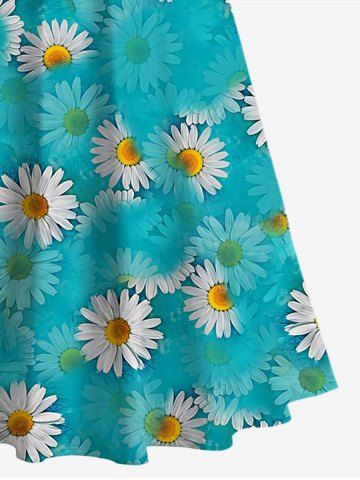 Plus Size Cold Shoulder Ombre Daisy Flower Print Crisscross A Line Dress - Green - 5x