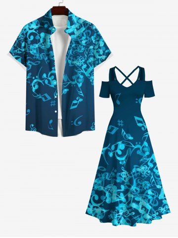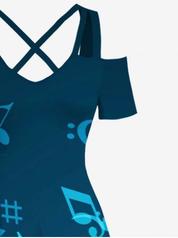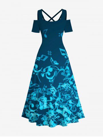 Graphic Dresses > Plus Size Cold Shoulder Ombre Music Symbol Print Crisscross A Line Dress