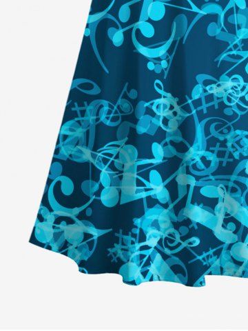 Plus Size Cold Shoulder Ombre Music Symbol Print Crisscross A Line Dress - Multi-a - M