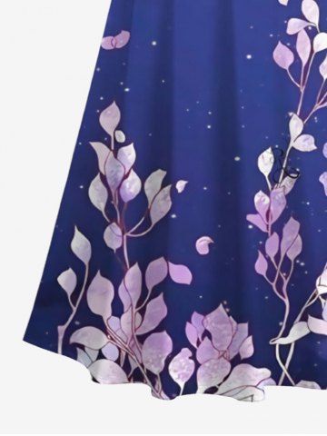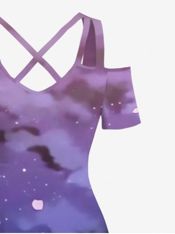 Plus Size Cold Shoulder Ombre Sky Galaxy Cloud Leaf Branch Print Hawaii Crisscross A Line Maxi Dress - Multi-a - 3x