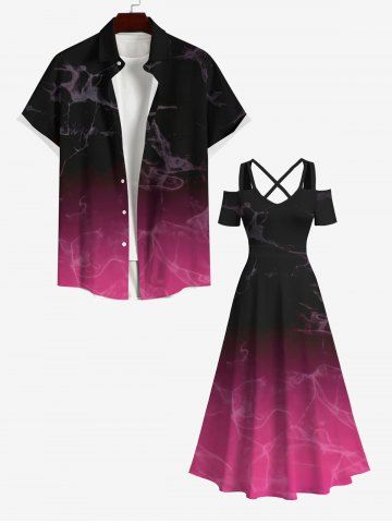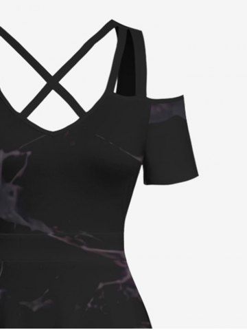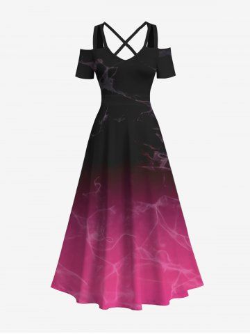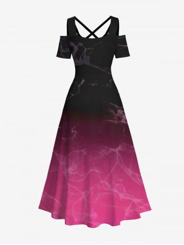Graphic Dresses > Plus Size Cold Shoulder Smoking Dip Dye Print Ombre Crisscross A Line Maxi Dress