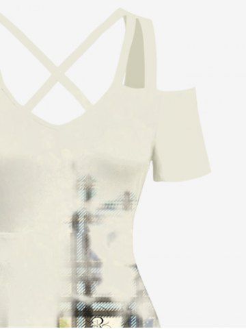 Plus Size Cold Shoulder Tie Dye Ombre Watercolor Plaid Print Crisscross A Line Maxi Dress - Multi-a - S