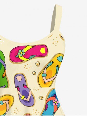 Plus Size Coloful Flip-Flops Stones Print Hawaii Tank Dress - Yellow - L