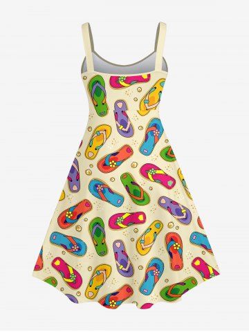 Plus Size Coloful Flip-Flops Stones Print Hawaii Tank Dress - Yellow - 6x